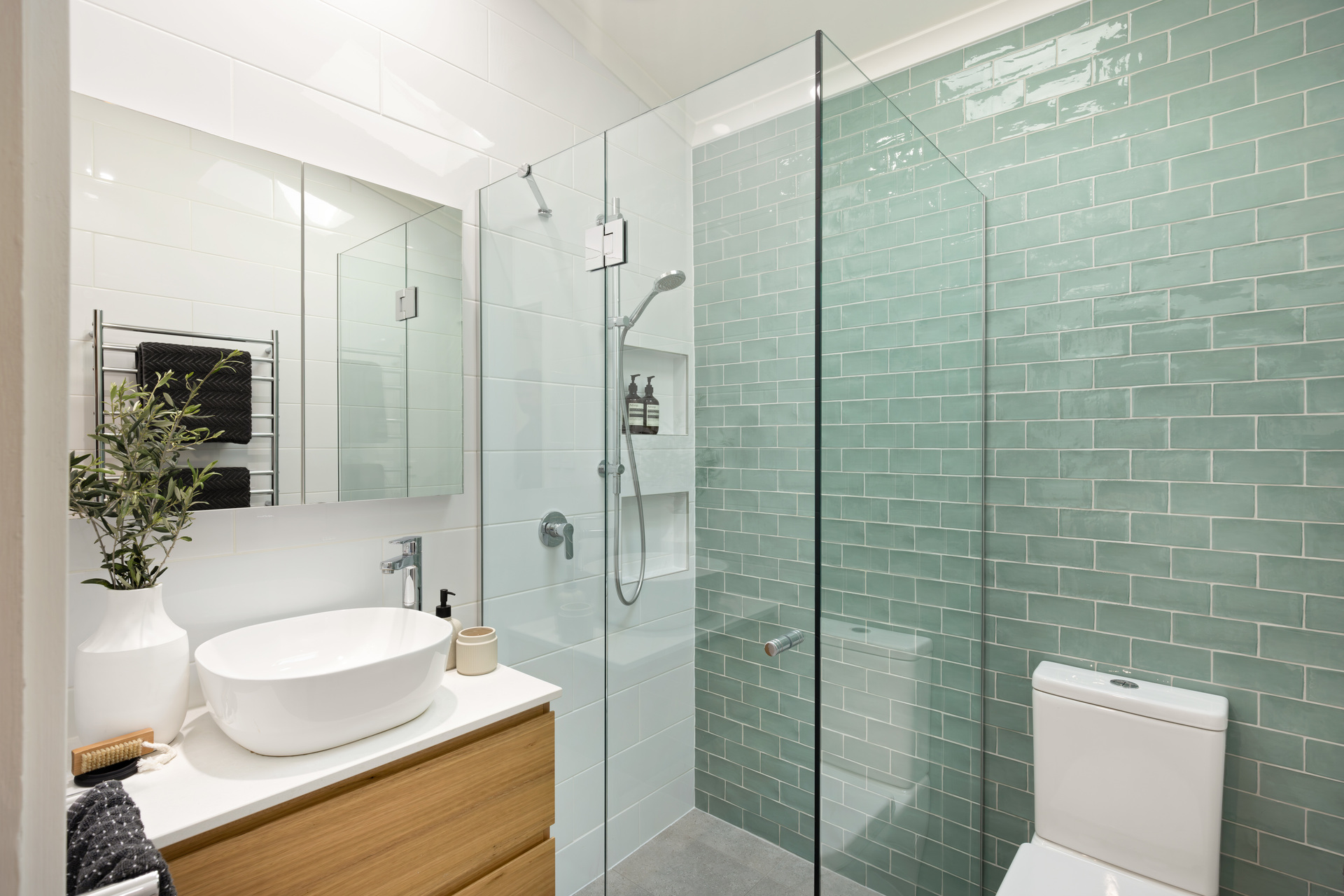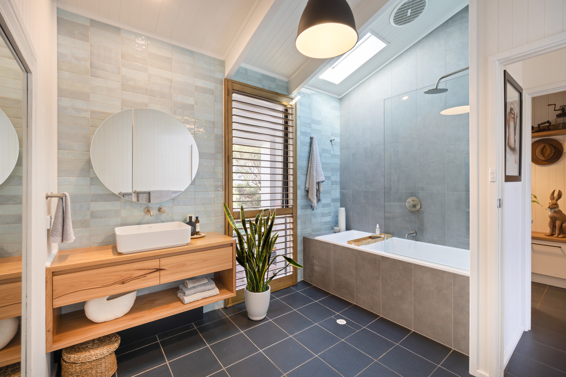 - Stylishly updated, fully tiled bathrooms and mudroom/laundry