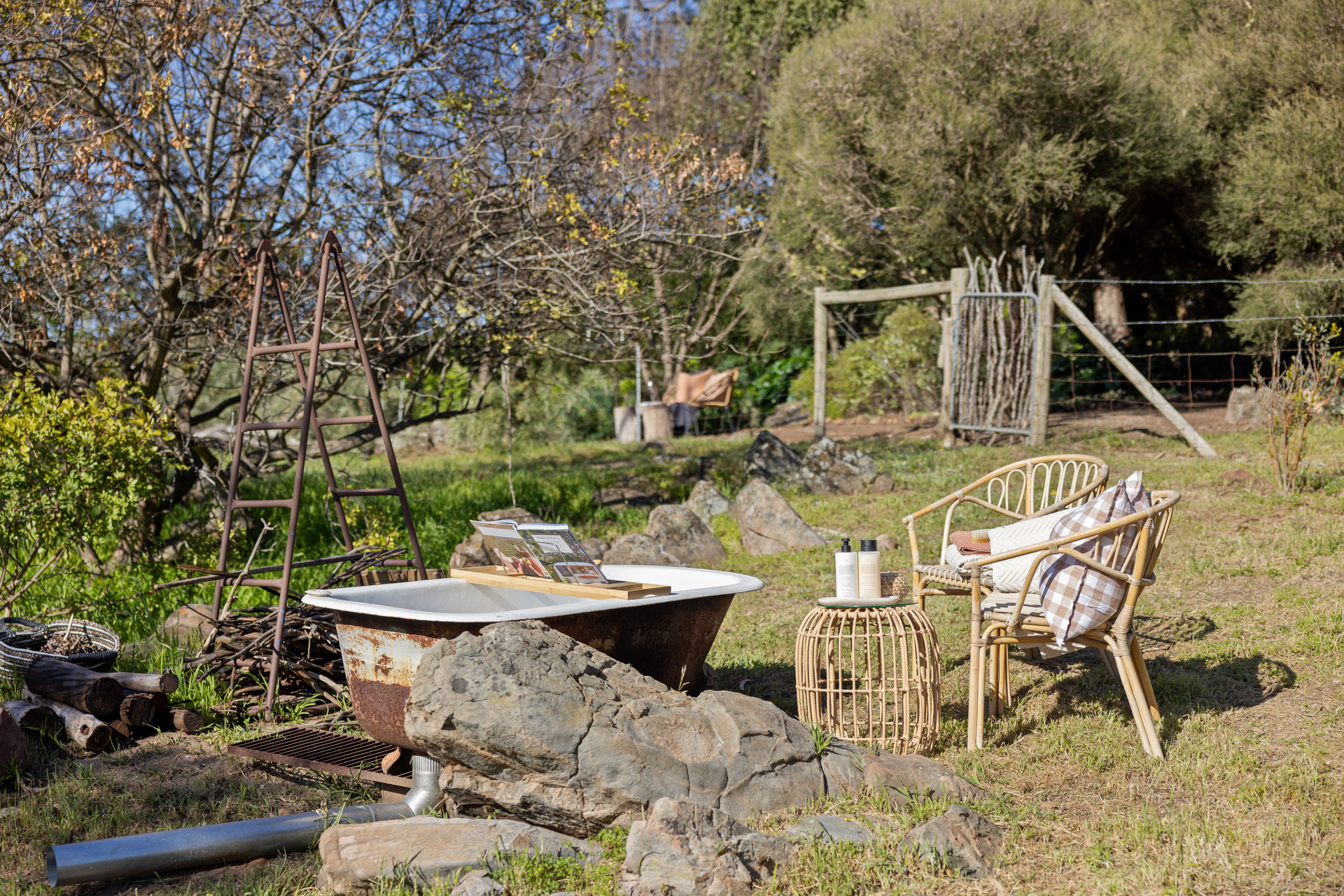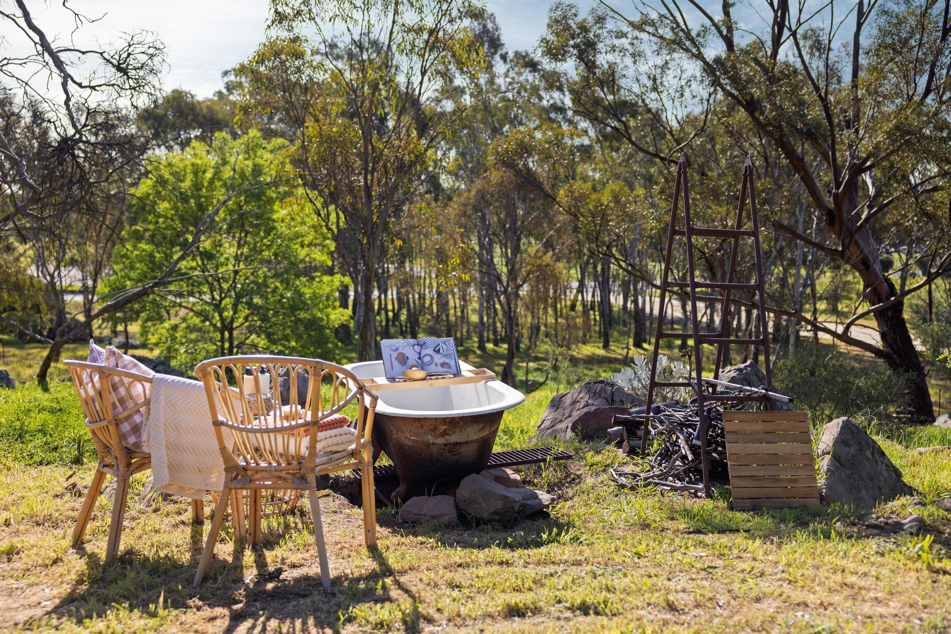 Soak up the Barossa's beauty from a special home on some five acres… A fire crackles under an old bathtub in the open air, warming the soul as you watch the sun dip over the vineyards that unfold at the base of the famous Menglers Hill…
